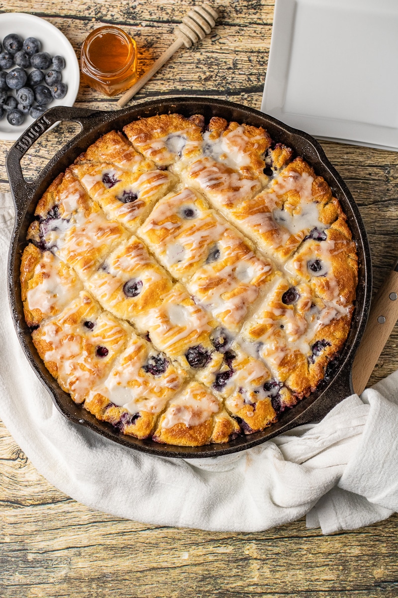 Blueberry Butter Swim Biscuits in a Cast Iron Skillet