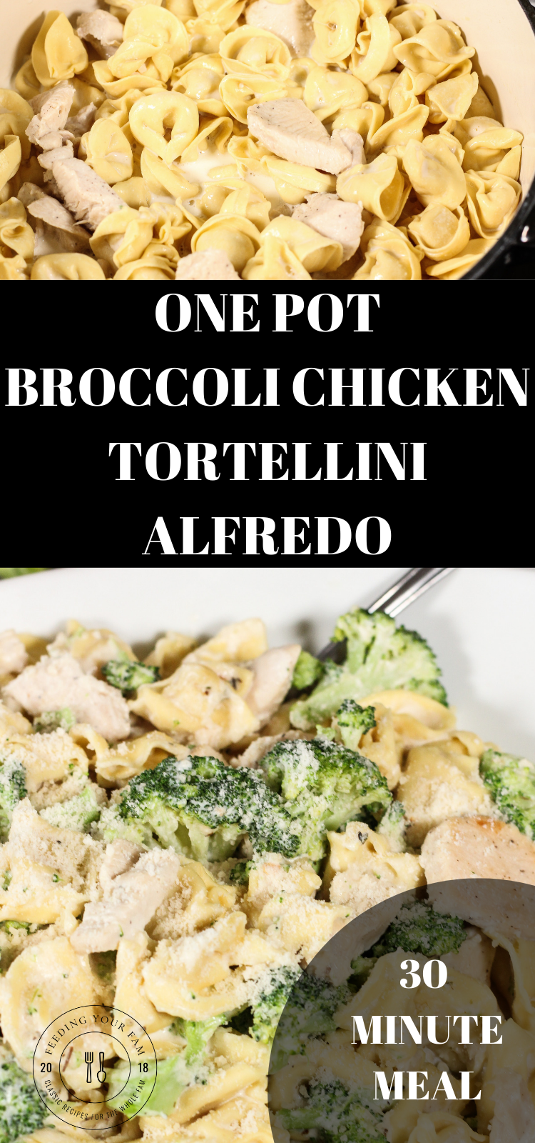 This ONE POT BROCCOLI CHICKEN TORTELLINI ALFREDO has a creamy sauce covering bite sized pieces of broccoli and chicken, perfectly seasoned and of course quick for a simple weeknight meal!